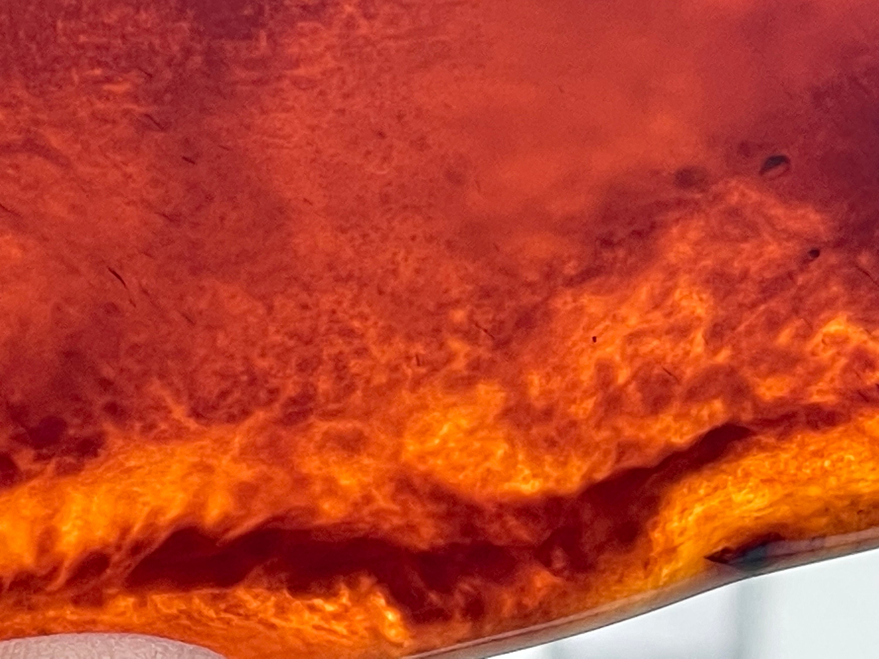 Depending on the incidence of light, blue, red, yellow and orange appear. It varies and shines in its different colors. It is important for the viewer to discover all the play of colors depending on the incidence of light and the density of the amber. It is fluorescent under UV light.