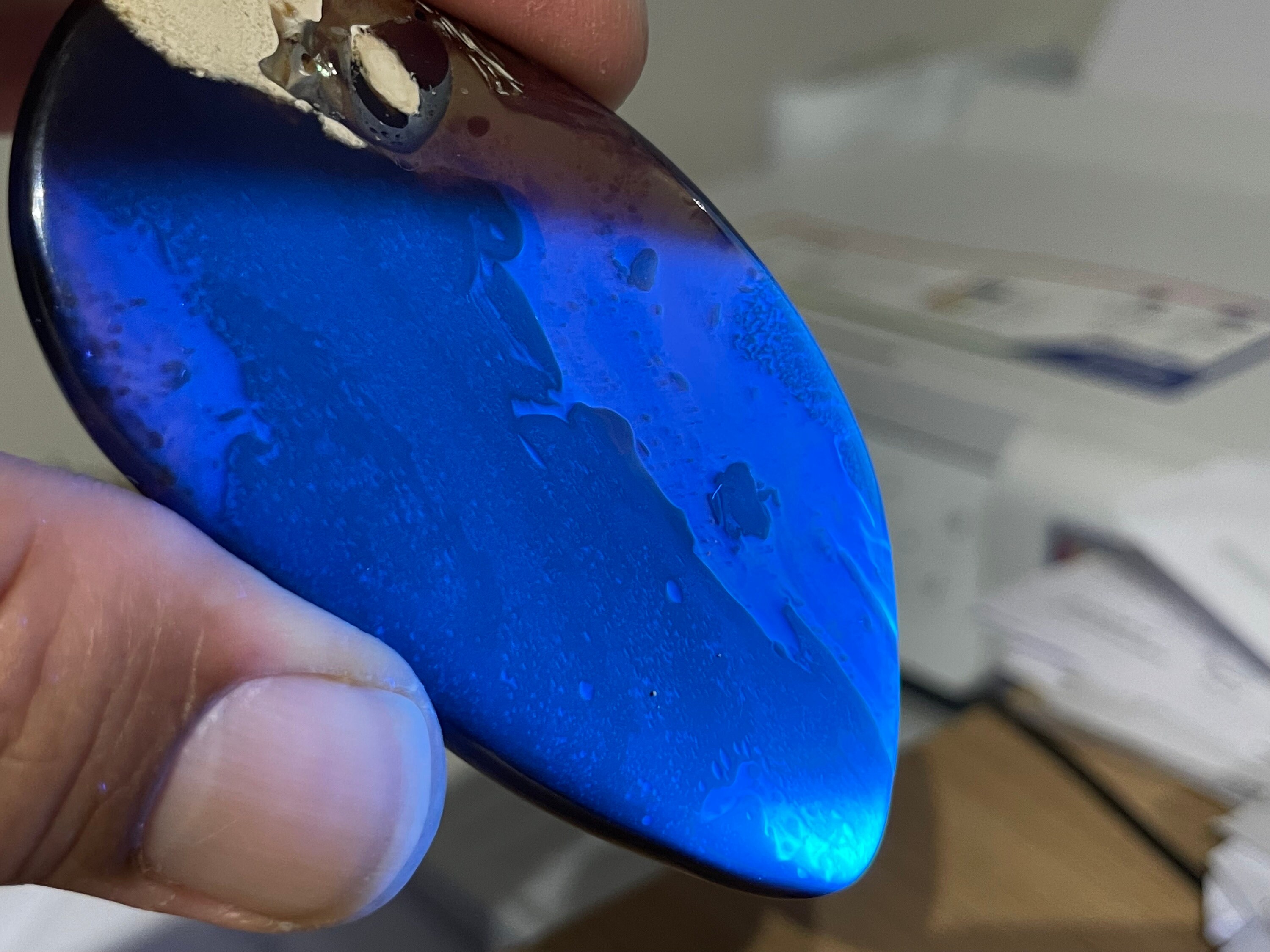 That's what makes him so rare. Amber does not mean that it glows blue, but under artificial light the amber appears like ordinary amber, but under sunlight it has an intense fluorescent blue glow.