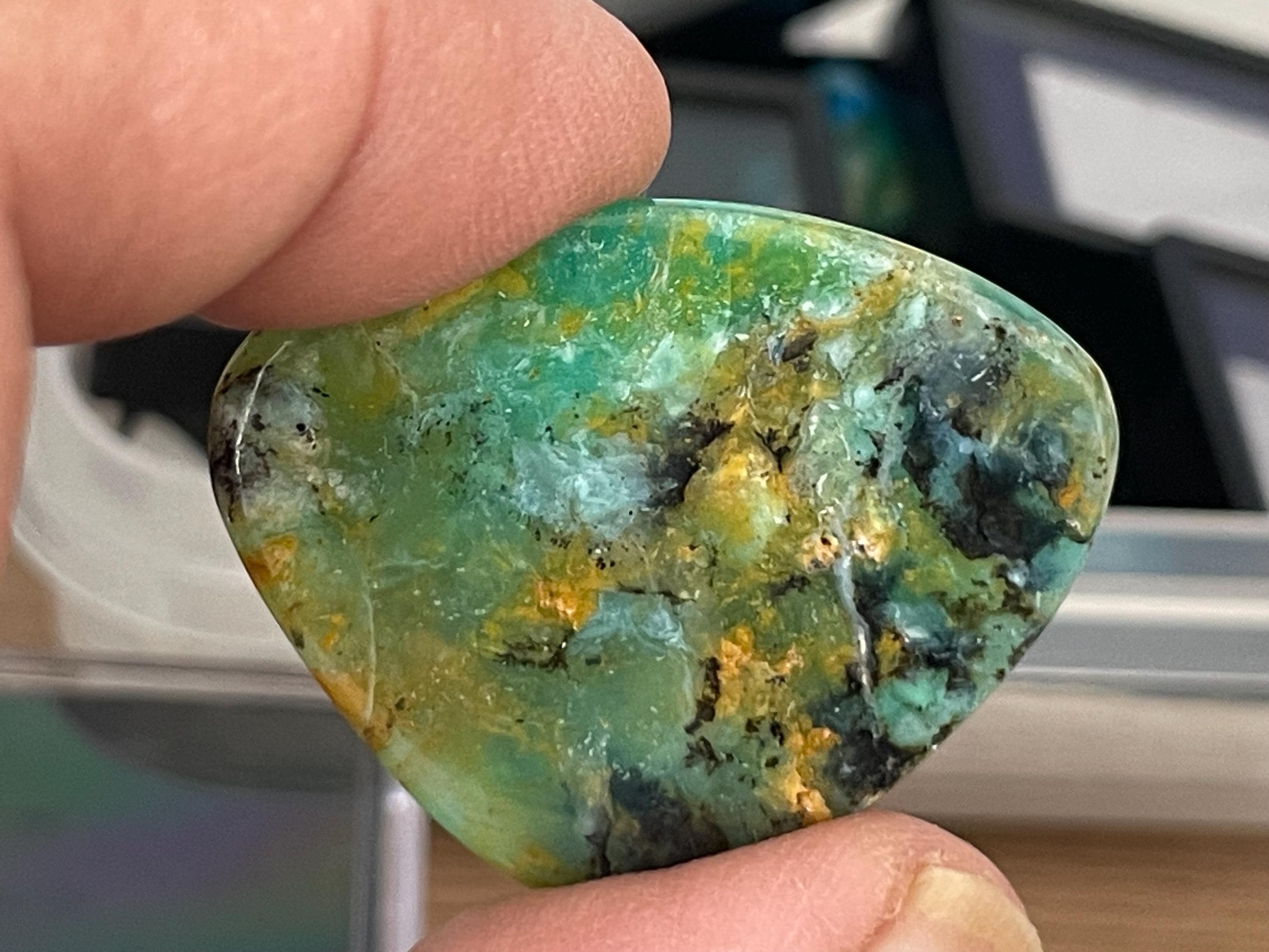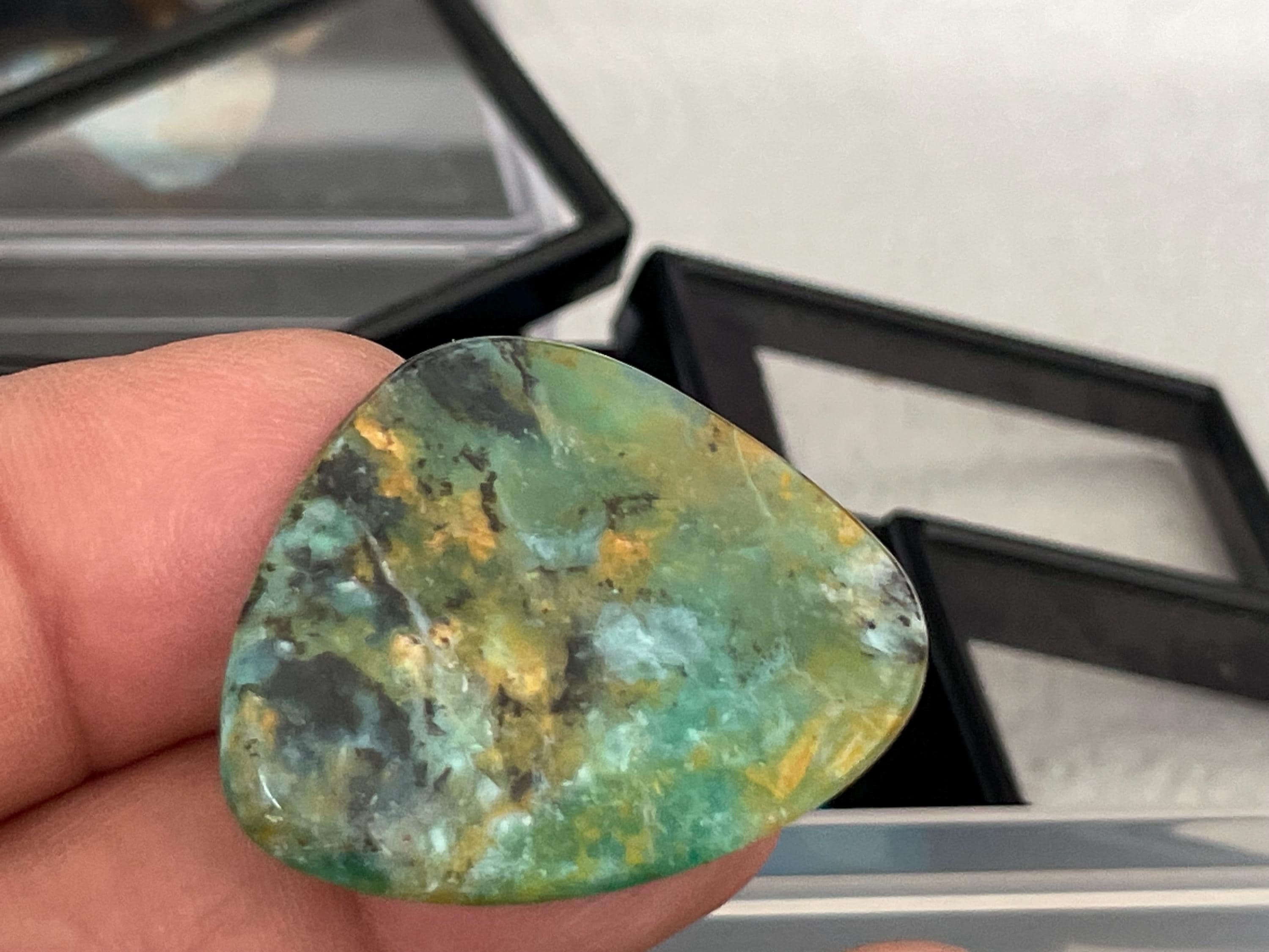 In the gemstone and jewelry trade, a distinction is made between three types, precious opal (with play of colors), common opal (without play of colors) and fire opal. The latter occurs with and without a play of colors. There is also the boulder opal, only found in Australia (brown host rock, matrix