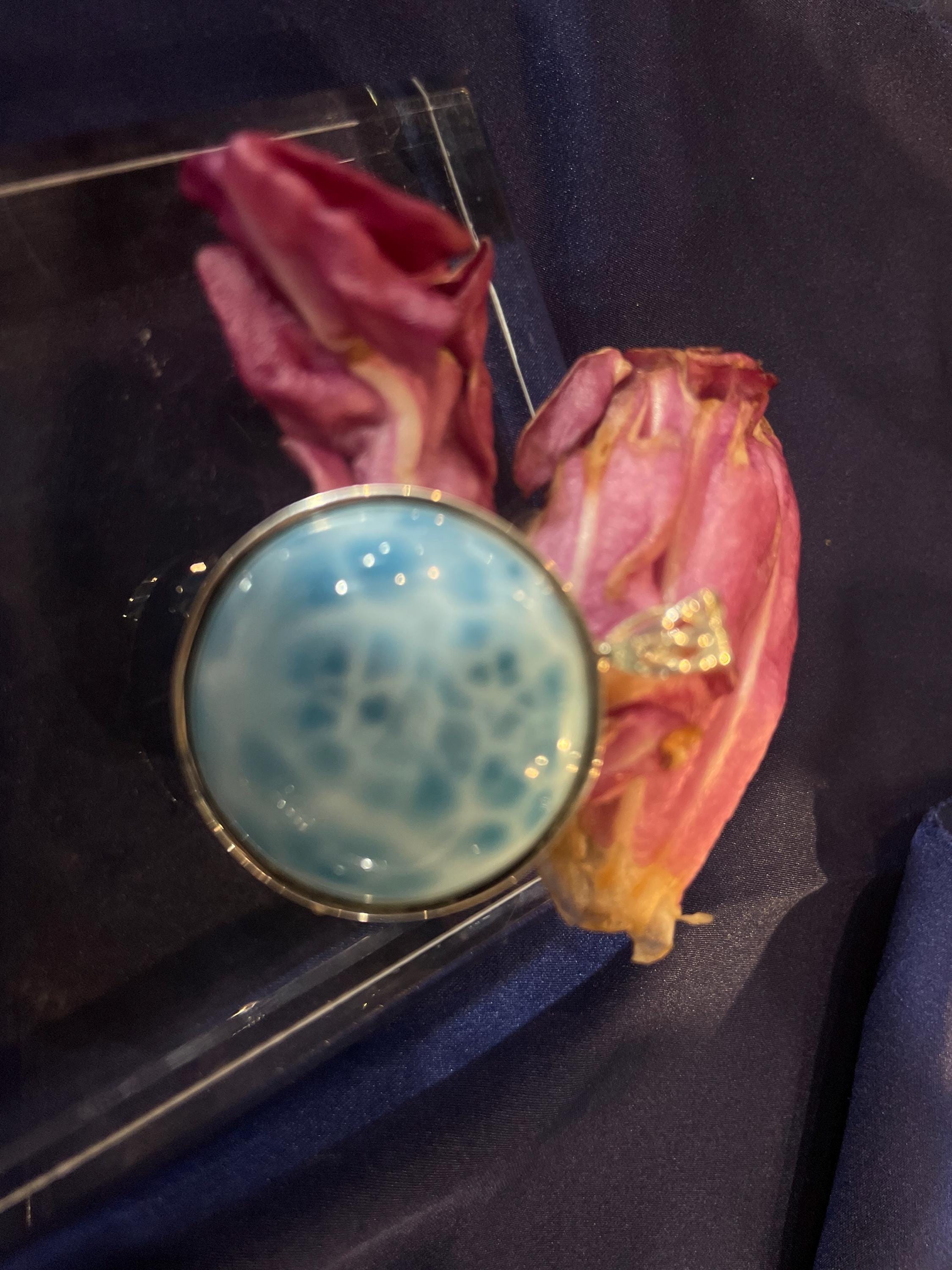 The rarity of the Larimar (there is almost only one place of discovery, Dominican Republic) and the special color make it a valuable and coveted gemstone.