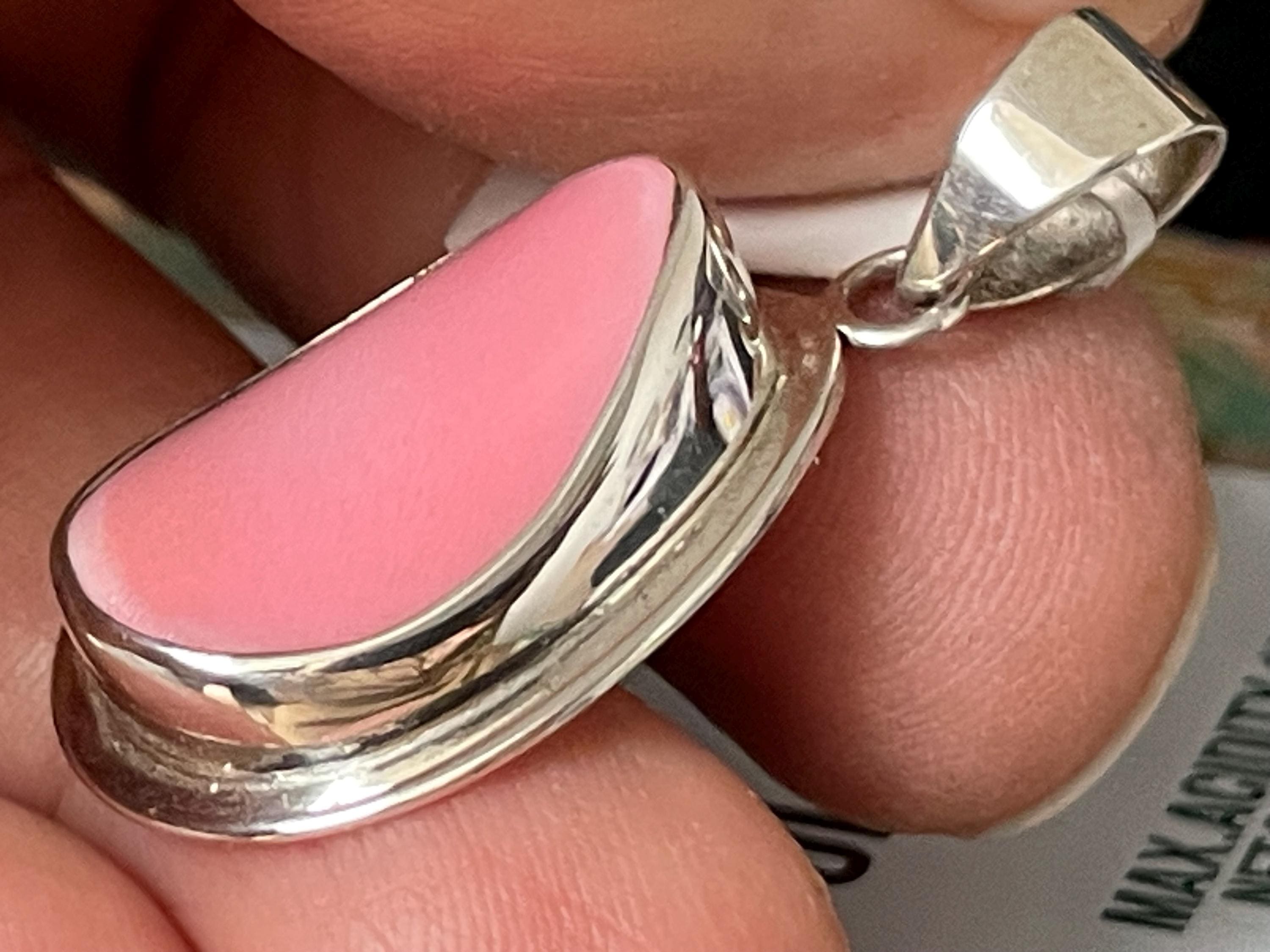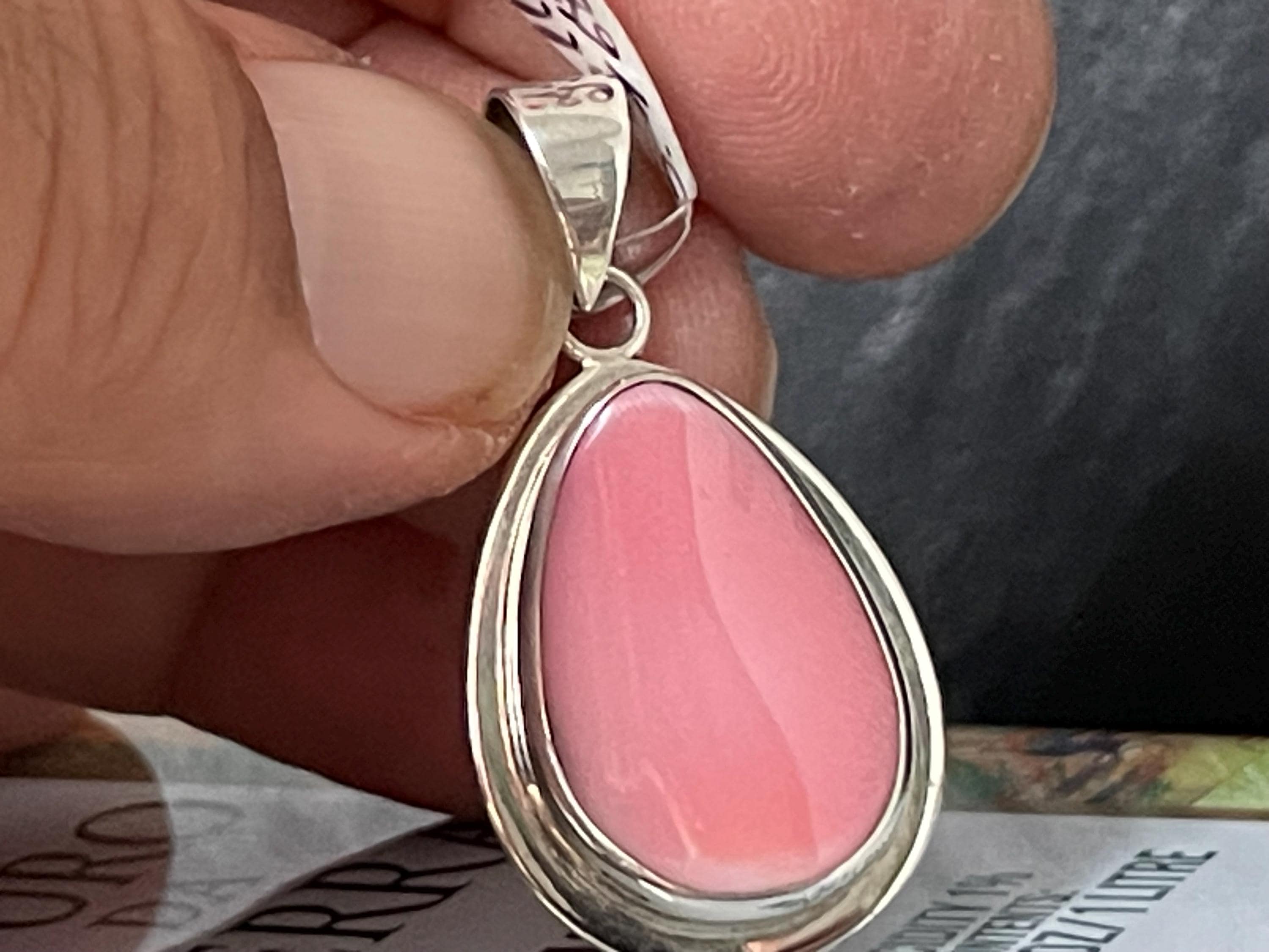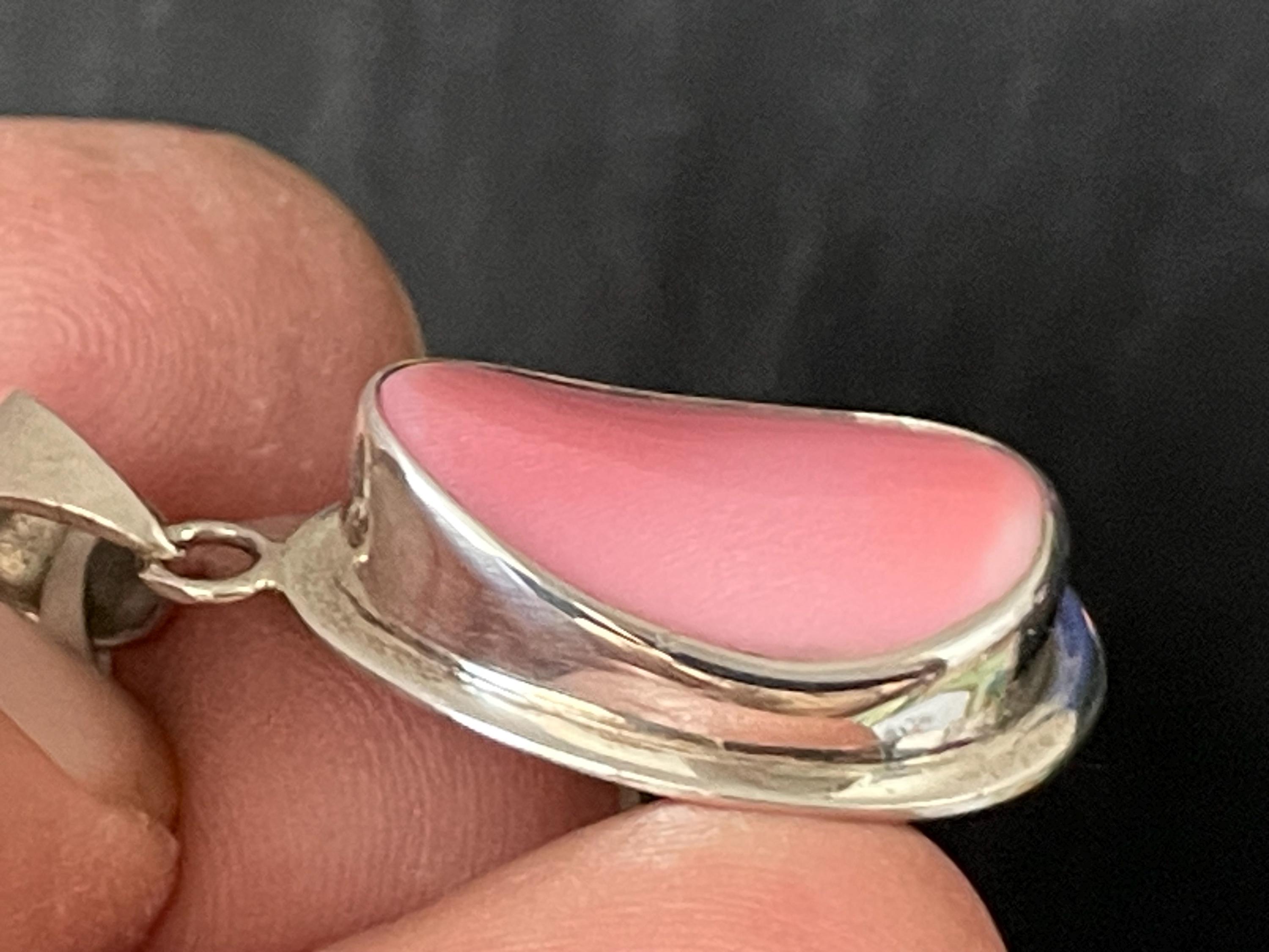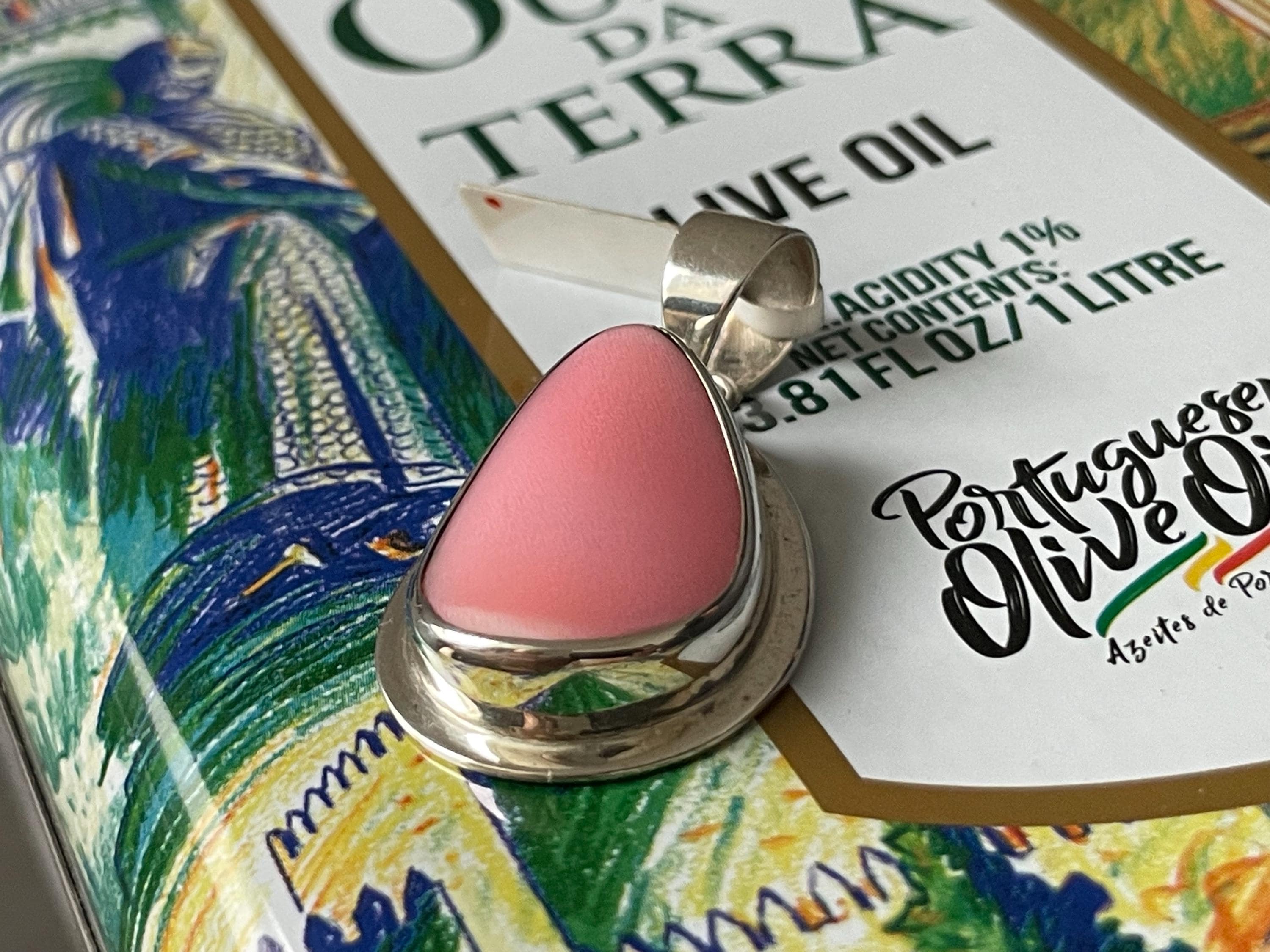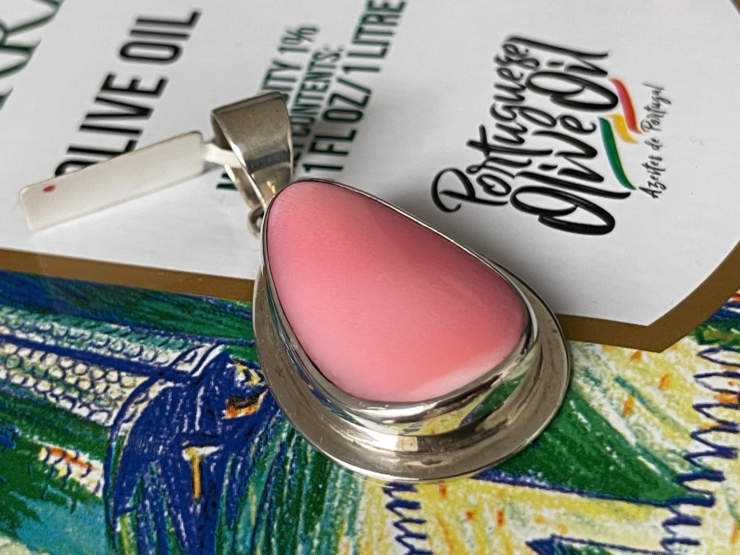 This Kingshell pendant embodies the tranquil power of the ocean. Its soft cream and rose tones evoke the warmth of Caribbean beaches and the gentle lapping of waves.