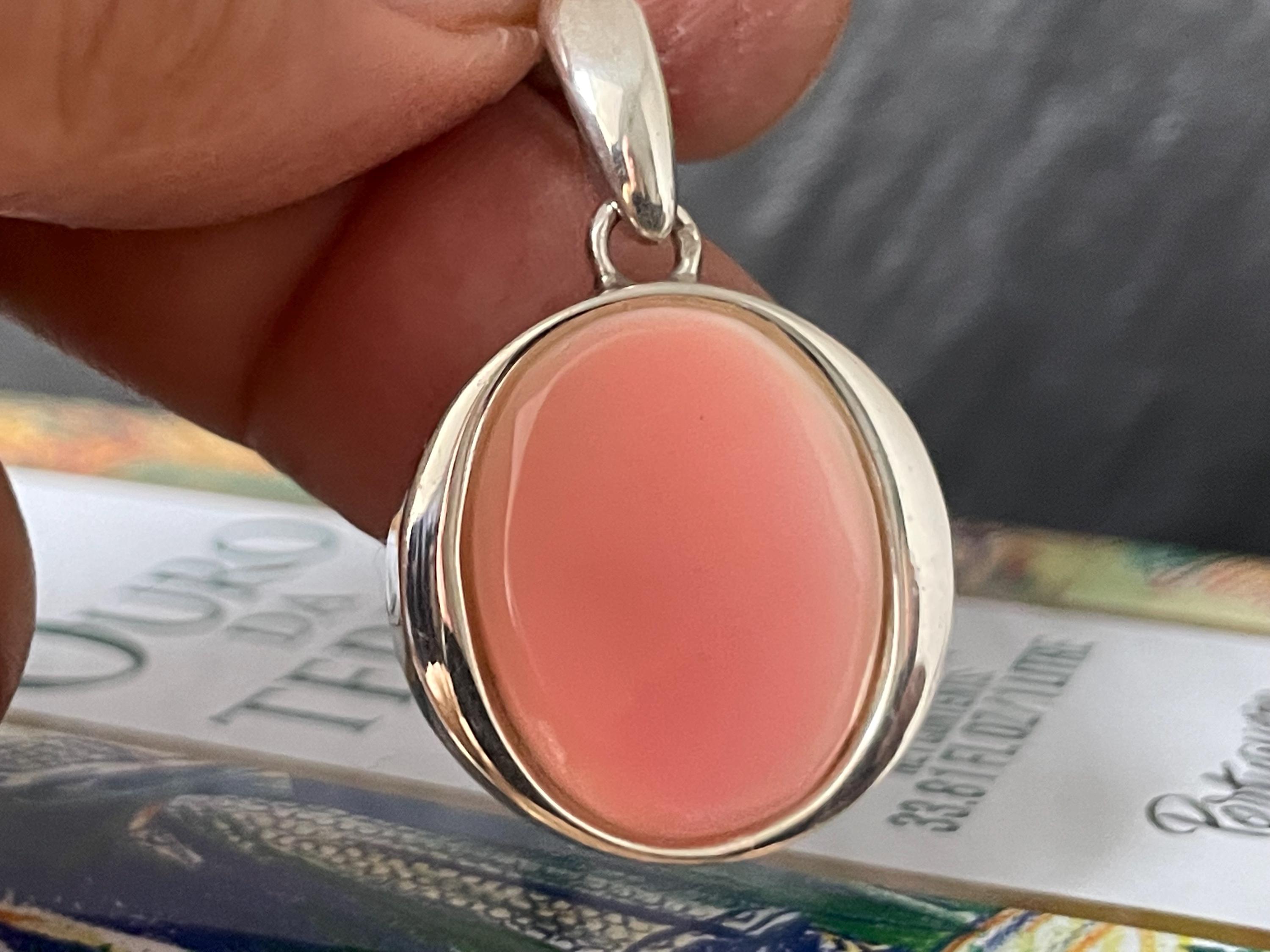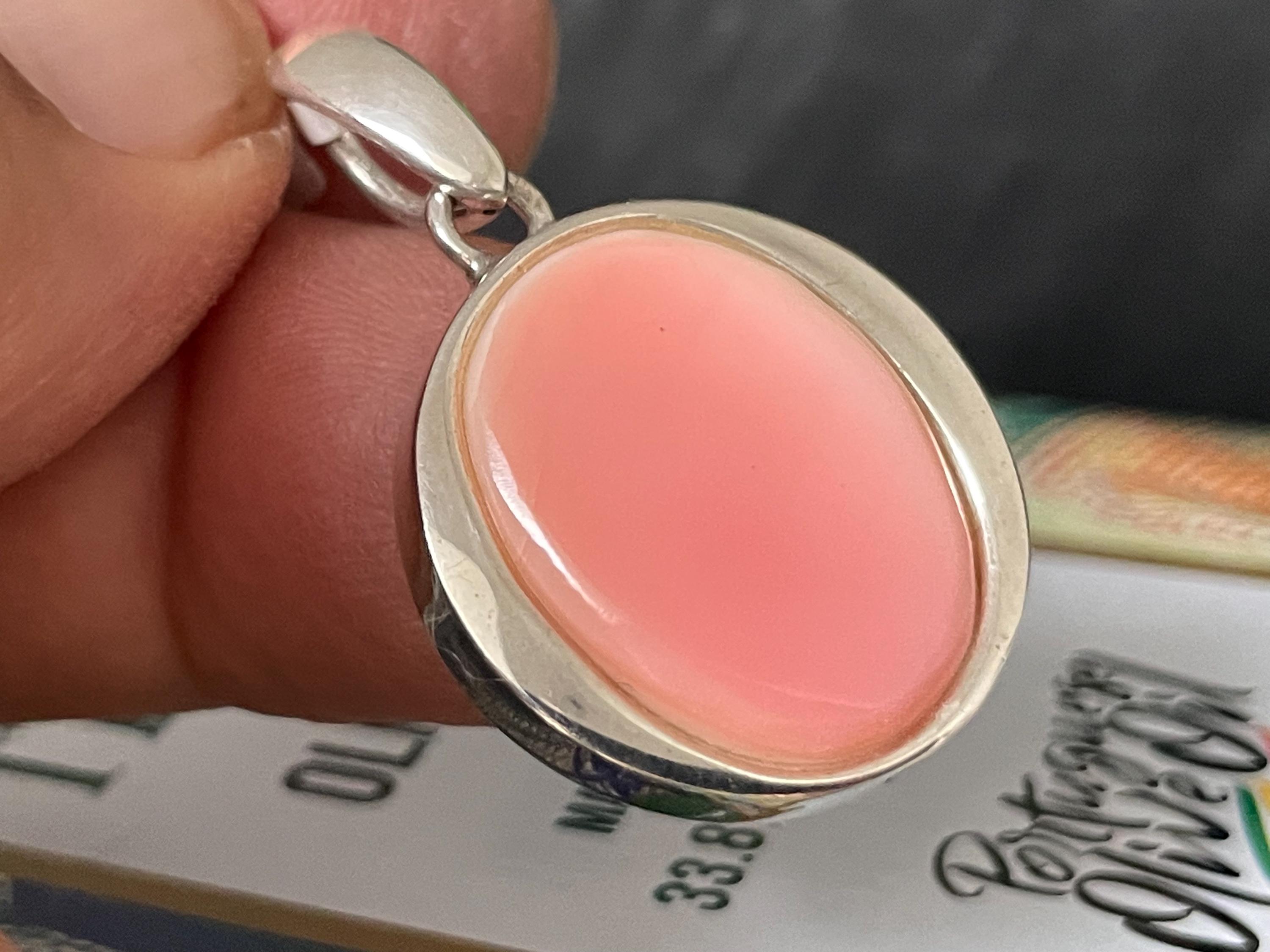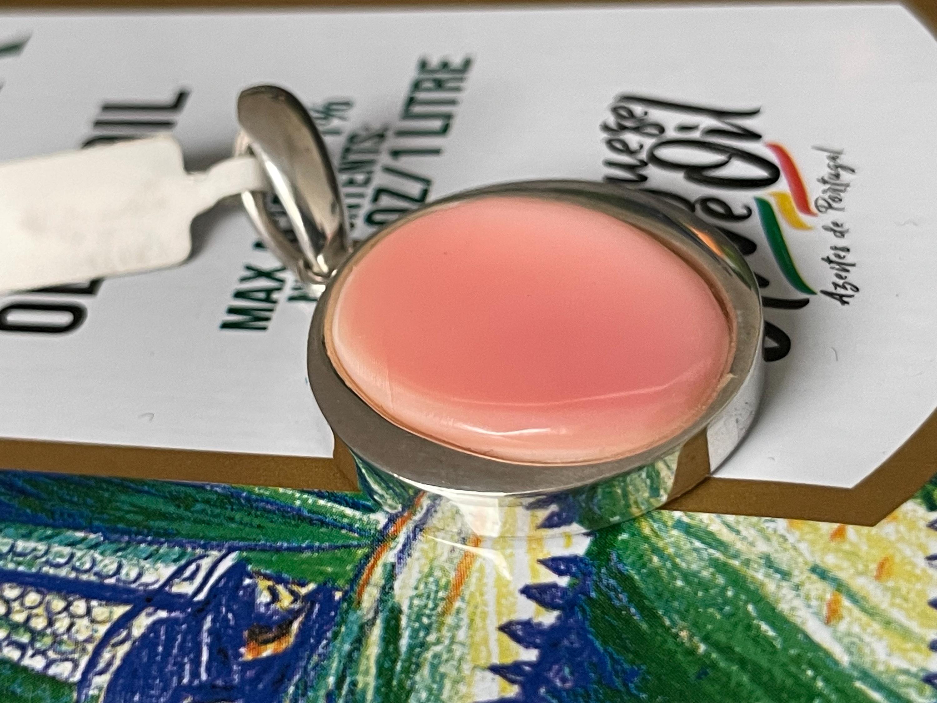 This Kingshell pendant embodies the tranquil power of the ocean. Its soft cream and rose tones evoke the warmth of Caribbean beaches and the gentle lapping of waves.