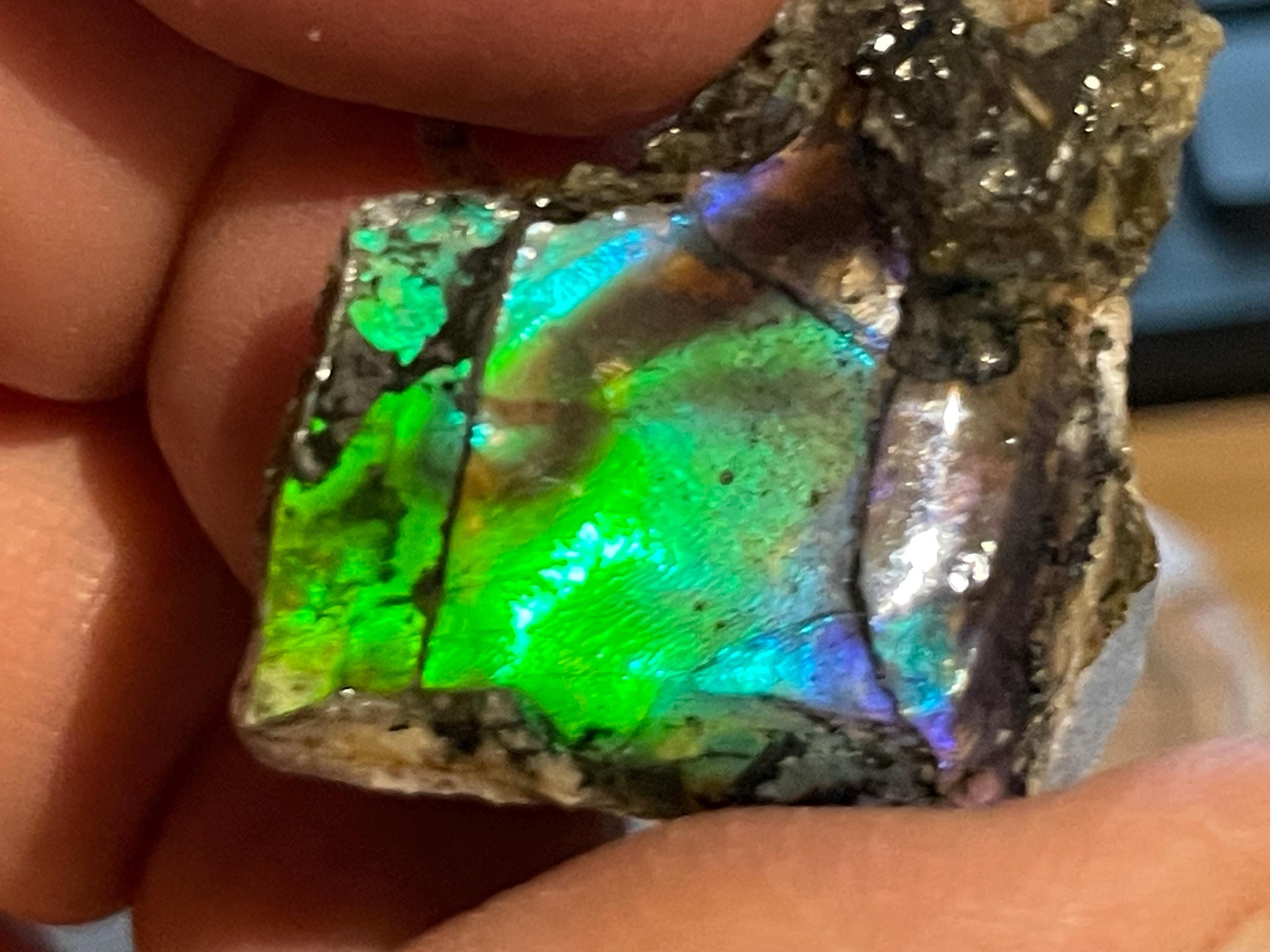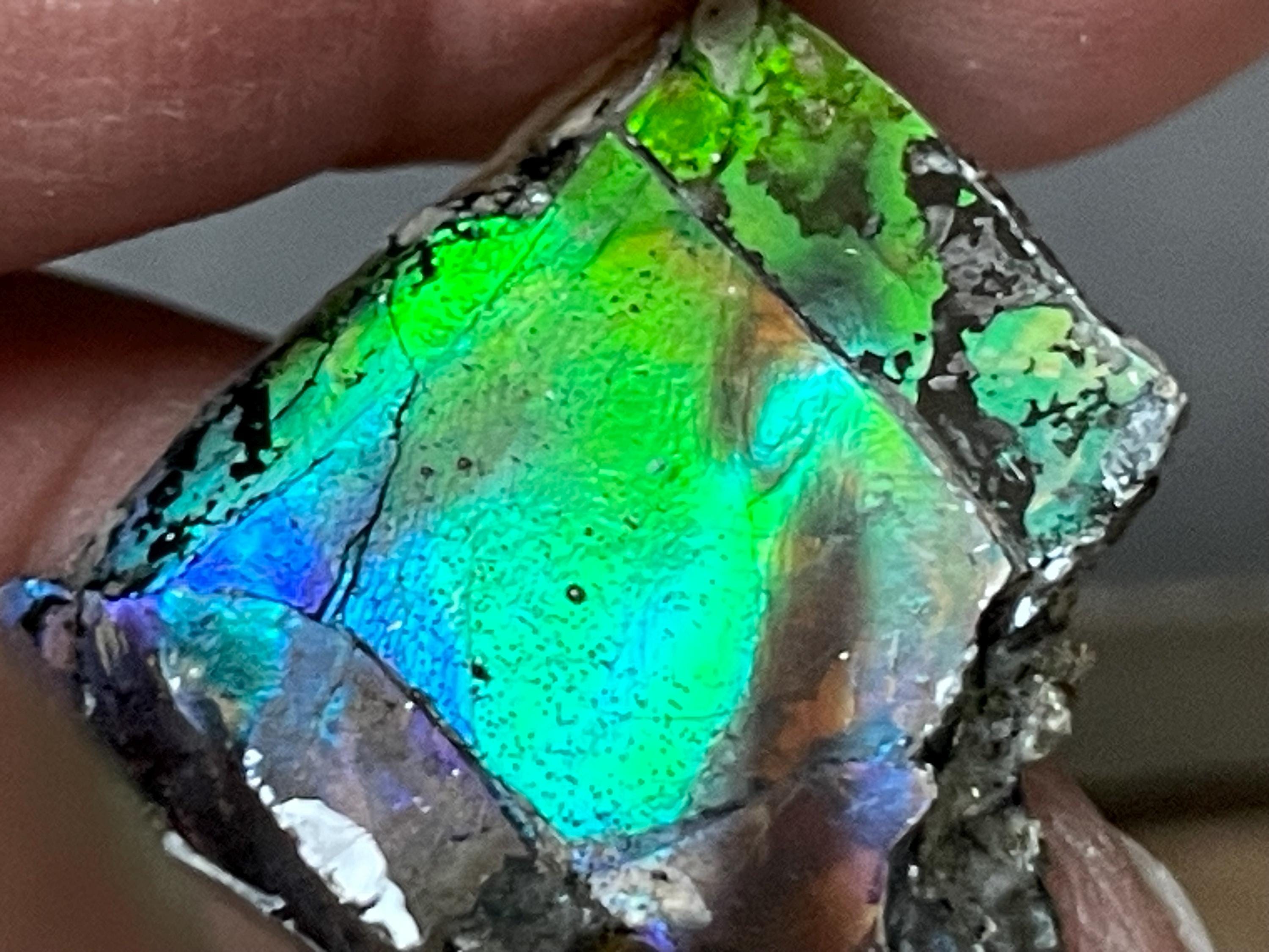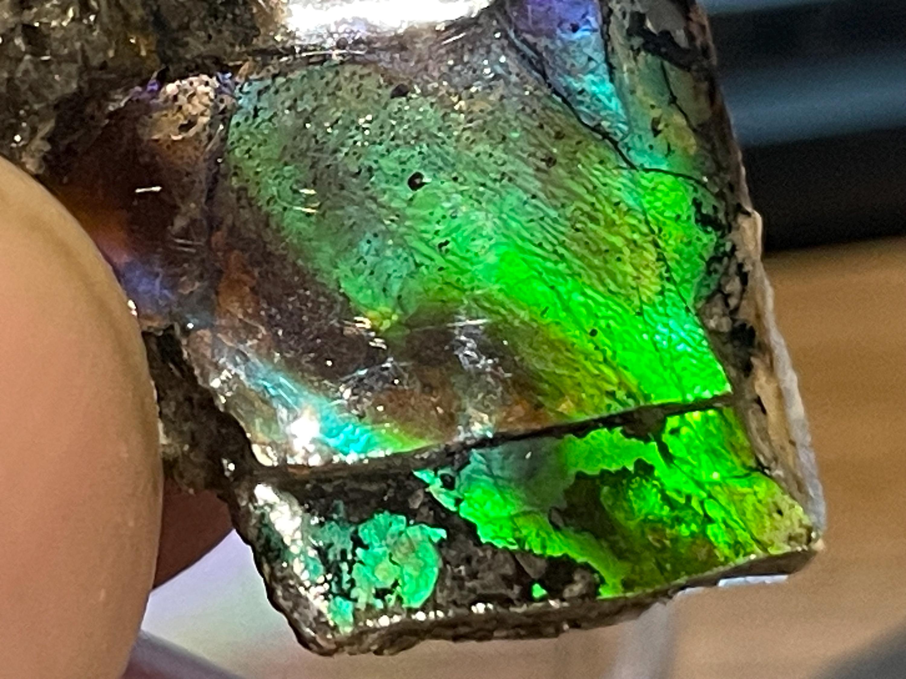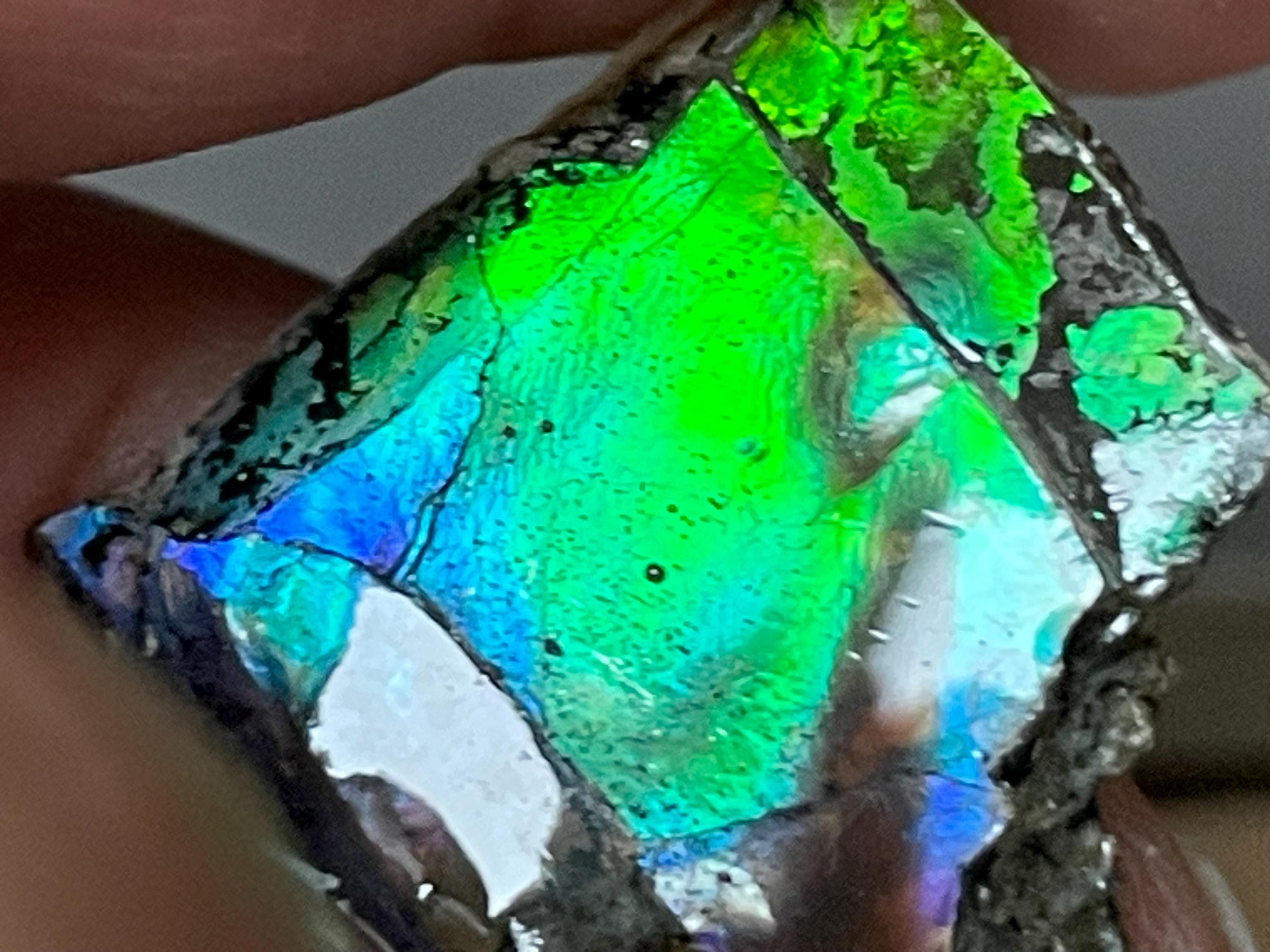 ✨ A stone like a small firework from prehistoric times. This fascinating ammolite from Canada is a real eye-catcher. Its intense play of colors appears vibrant and mysterious, almost as if illuminated from within. No wonder, because ammolite is not an ordinary gemstone, but a rare gem formed from the fossilized shells of ammonites – around 70 to 75 million years ago!