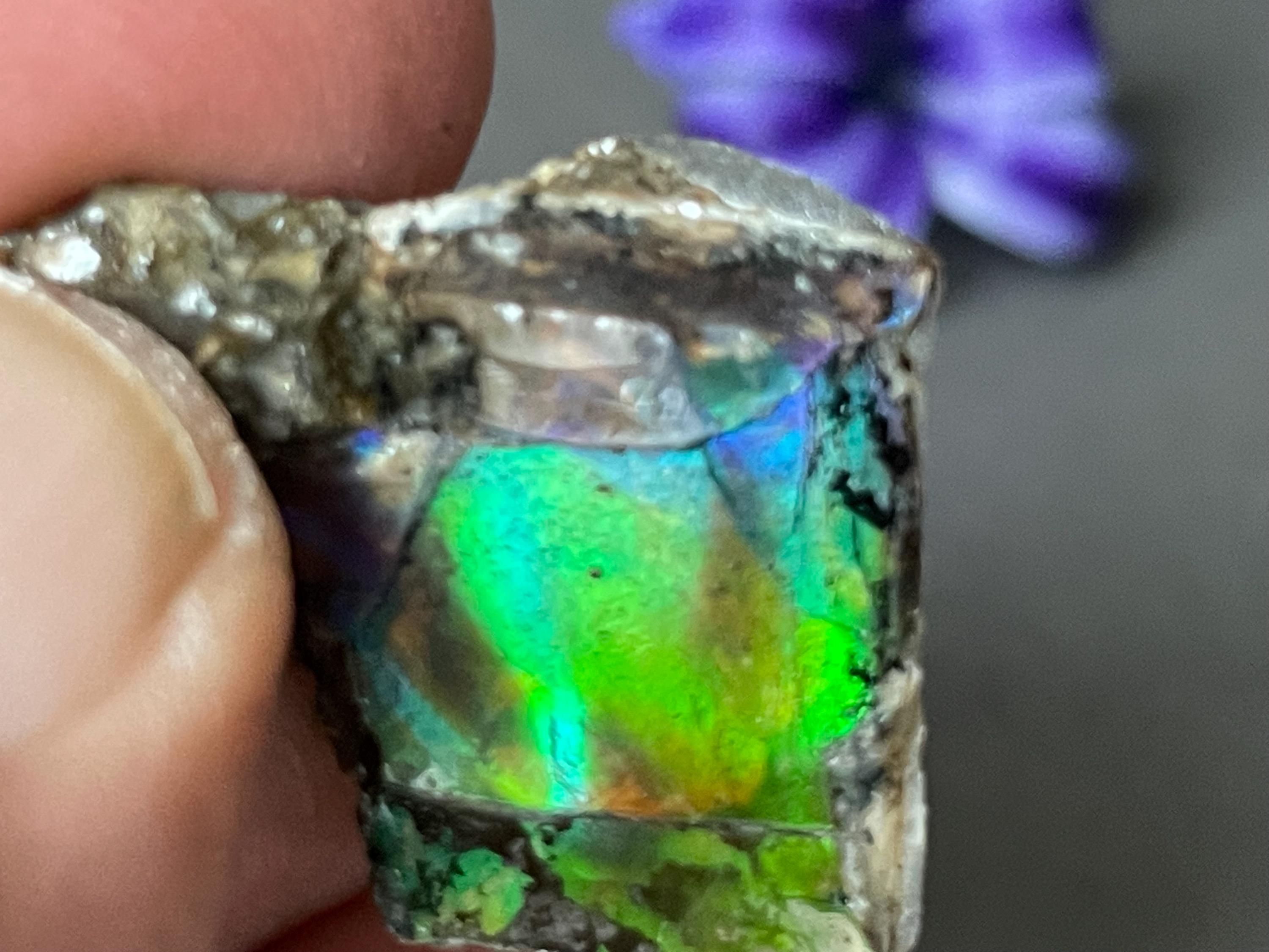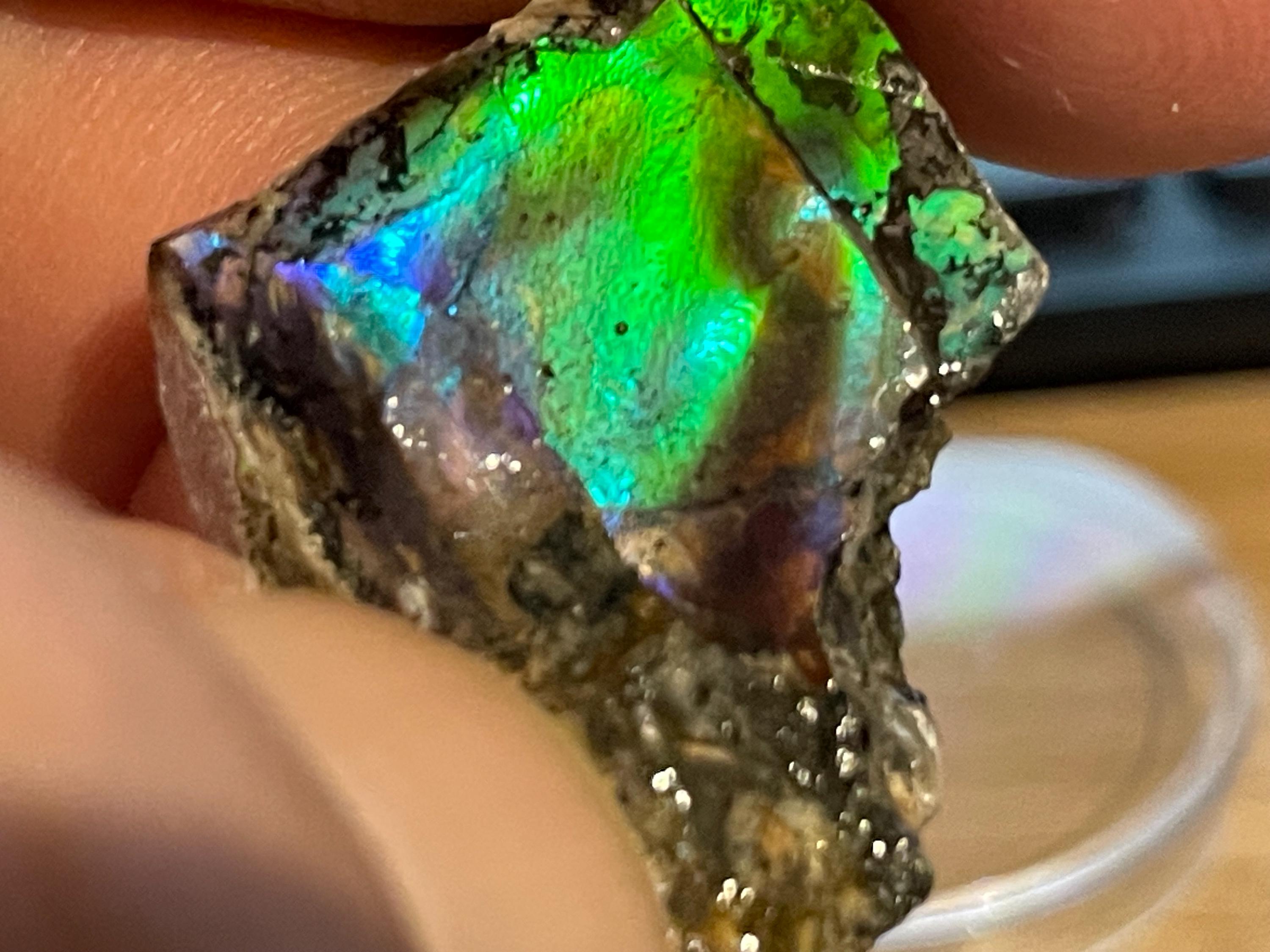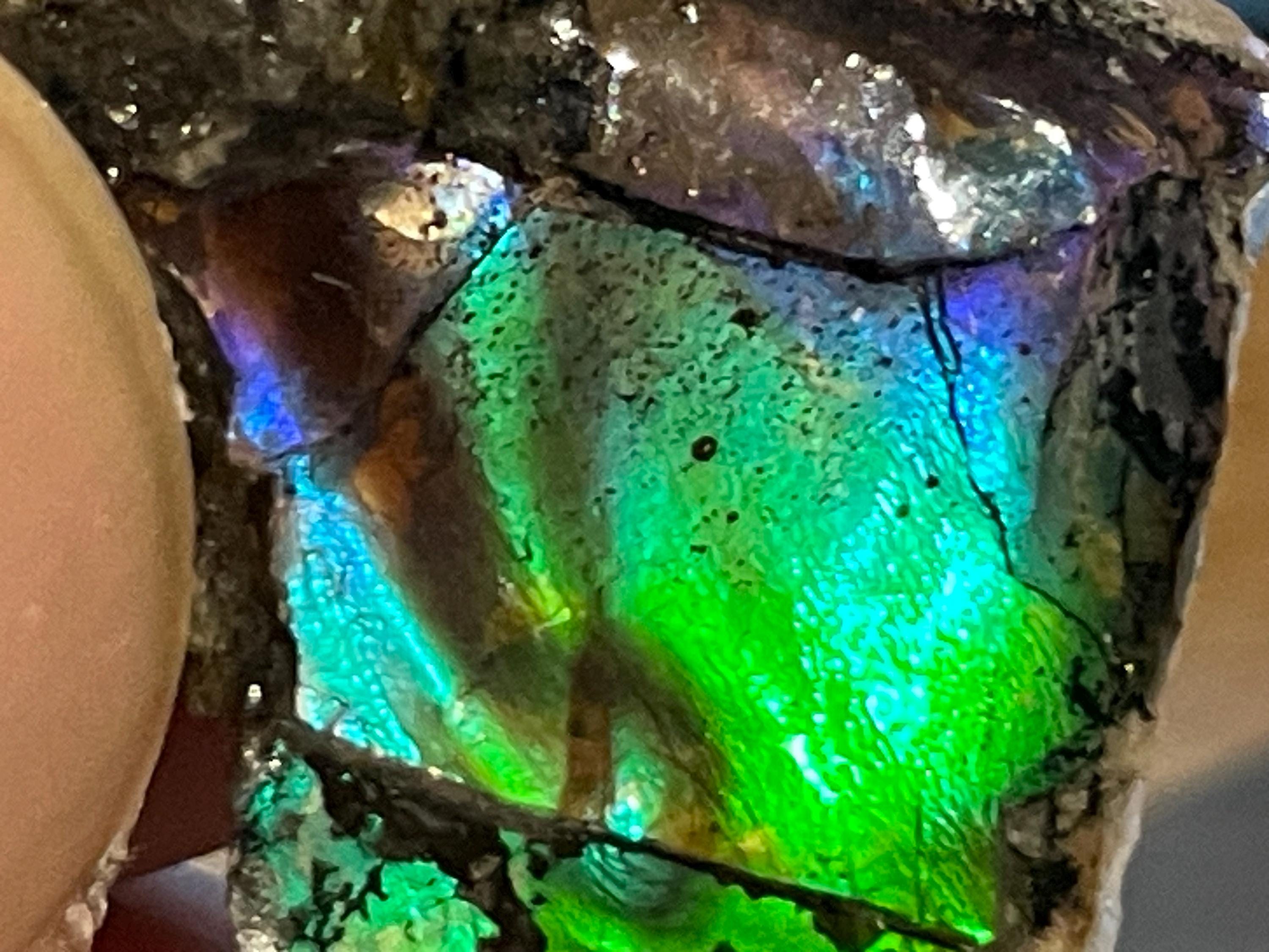 ✨ A stone like a small firework from prehistoric times. This fascinating ammolite from Canada is a real eye-catcher. Its intense play of colors appears vibrant and mysterious, almost as if illuminated from within. No wonder, because ammolite is not an ordinary gemstone, but a rare gem formed from the fossilized shells of ammonites – around 70 to 75 million years ago!