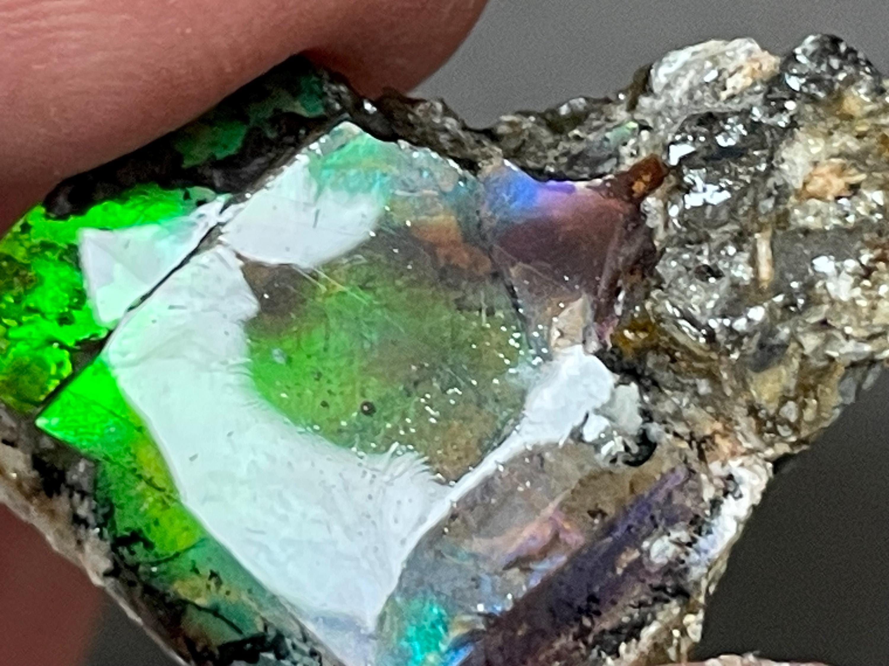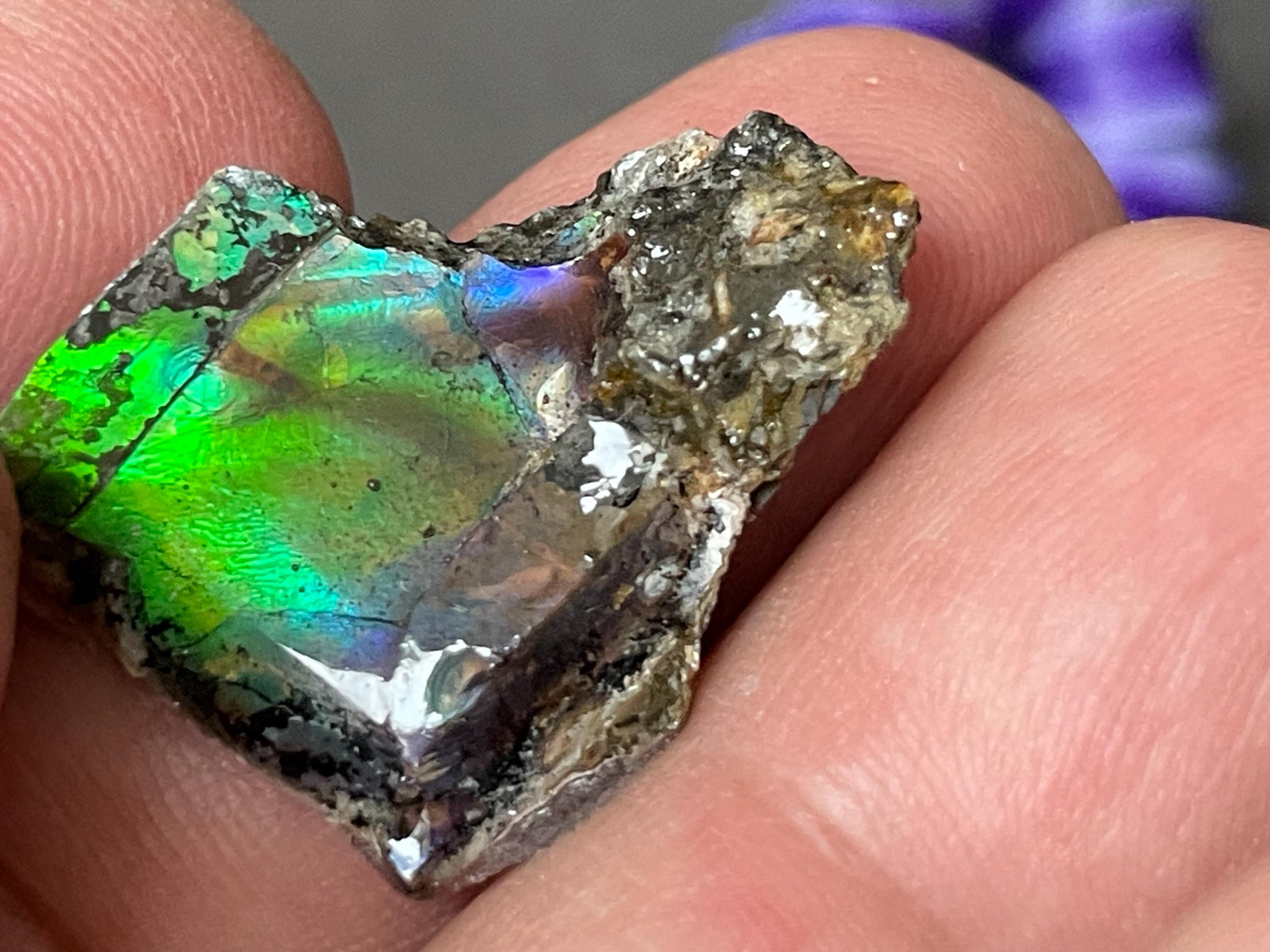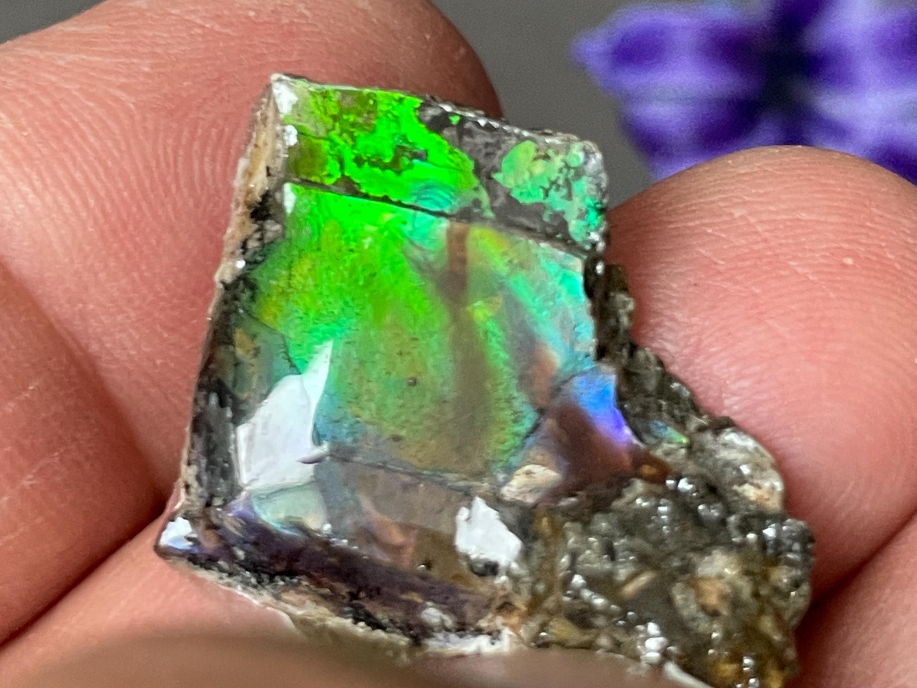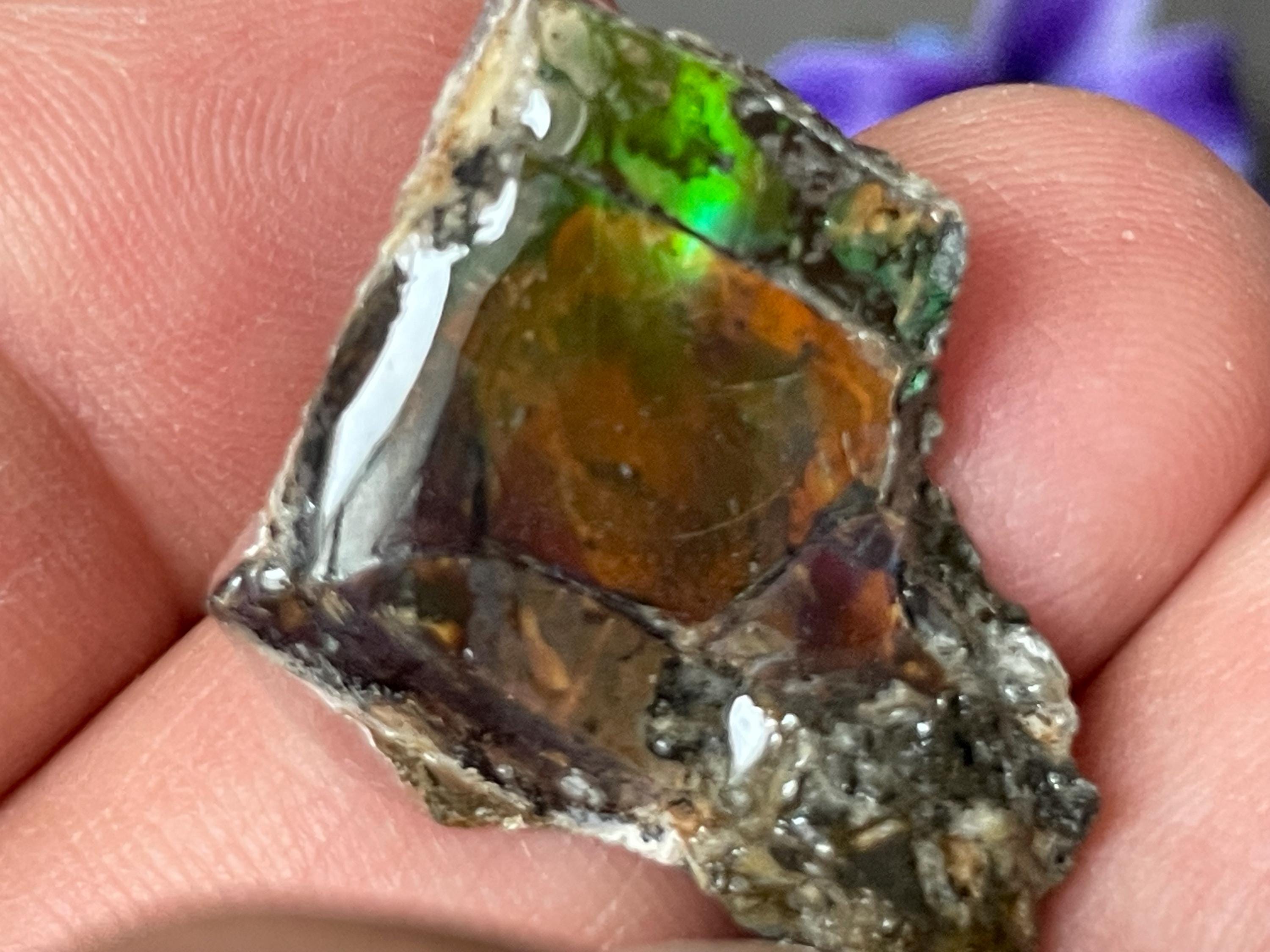 ✨ A stone like a small firework from prehistoric times. This fascinating ammolite from Canada is a real eye-catcher. Its intense play of colors appears vibrant and mysterious, almost as if illuminated from within. No wonder, because ammolite is not an ordinary gemstone, but a rare gem formed from the fossilized shells of ammonites – around 70 to 75 million years ago!