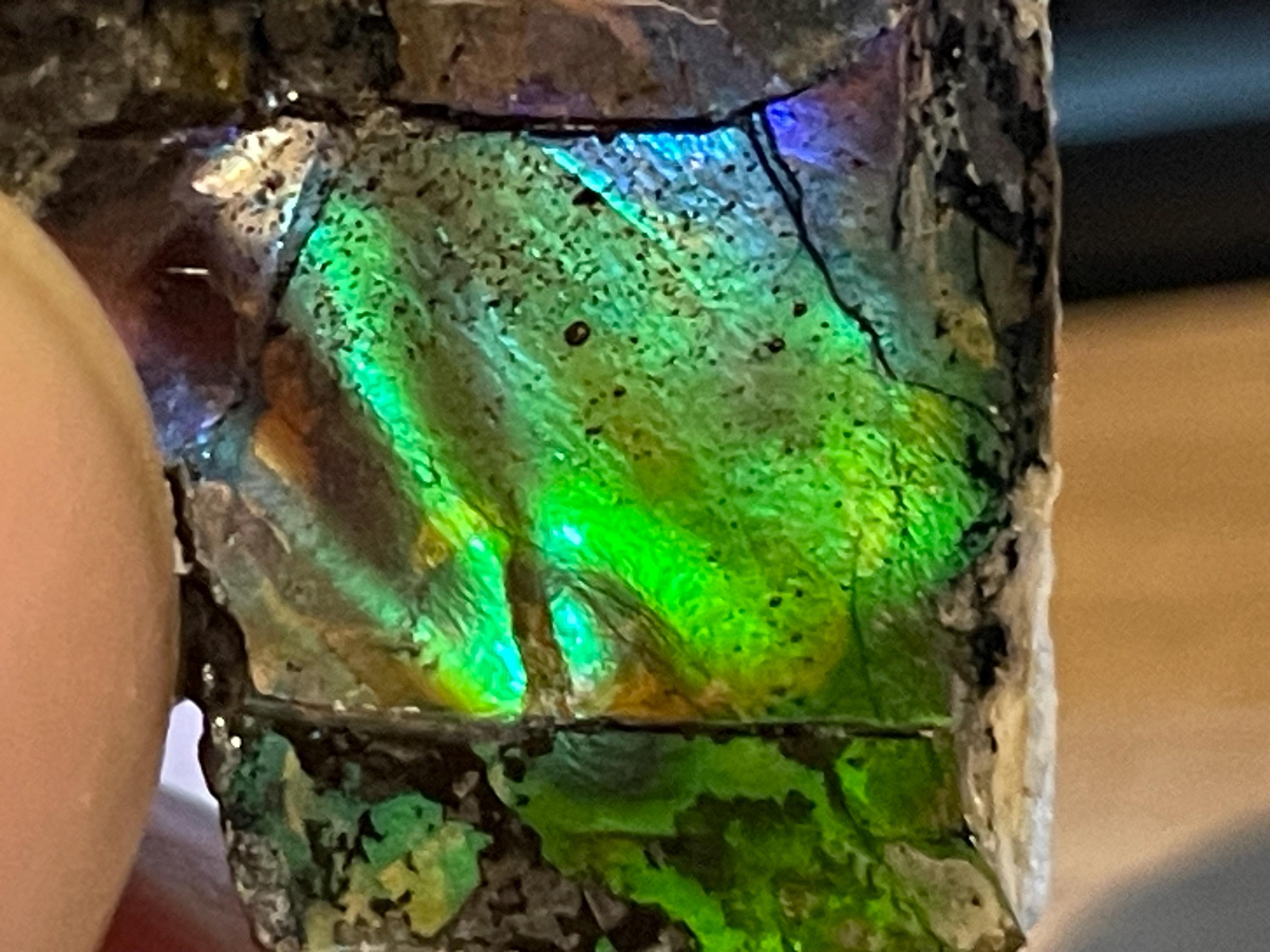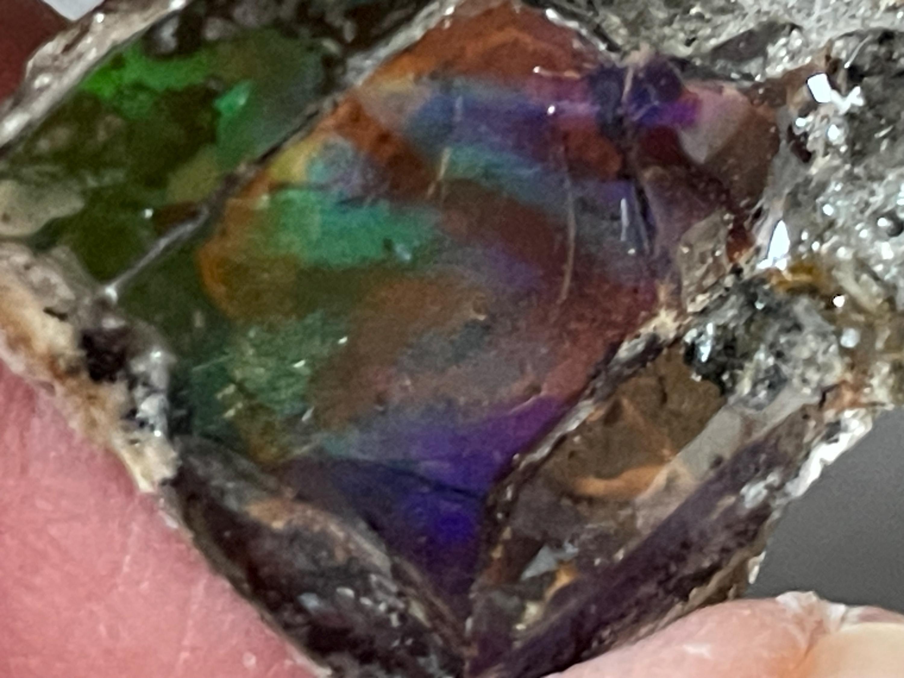 High-quality ammolite is primarily found in southern Alberta, especially in the famous Bearpaw Formation. 💫 The Uniqueness of Ammolite: What makes this stone so special is its origin and structure. It consists mainly of aragonite, enriched with traces of calcite, pyrite, silica, and other minerals. These fine layers create its spectacular iridescence in the light.